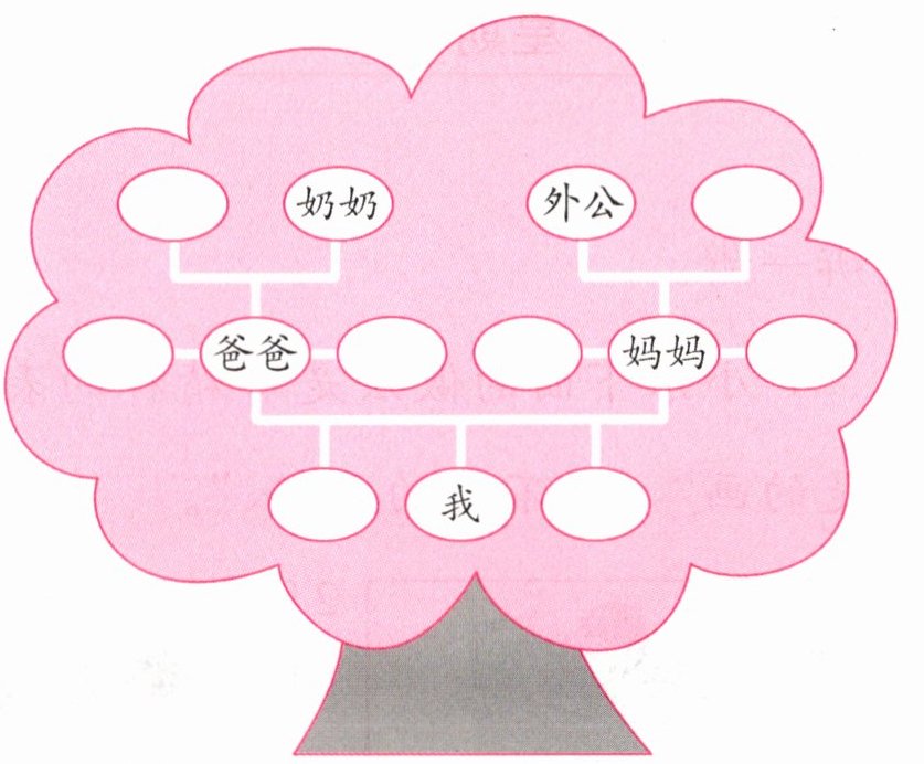 小朋友,你家有哪些成员呢?请在家庭树上写出
