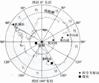(3)南极洲有丰富的煤炭资源,而煤炭的形成需要大量的植物,但目前,南极洲气候酷寒,植物稀少,说明南极洲曾经气候较为温暖,可能位于中纬度地区。