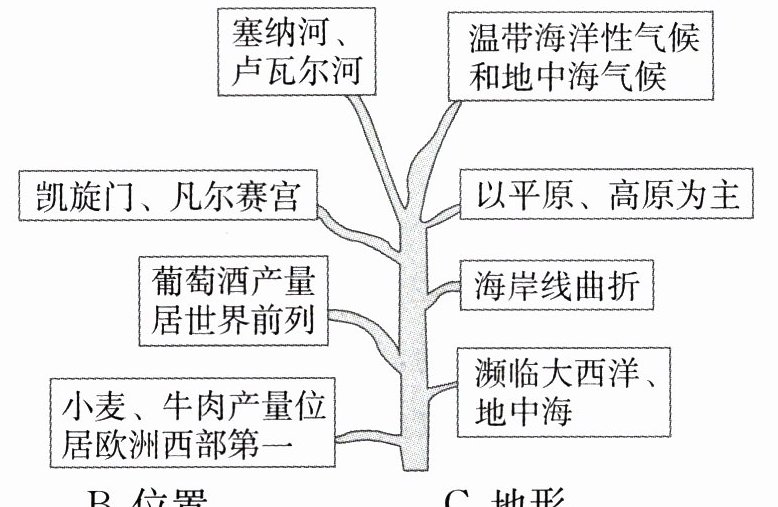 5. 下图是玲玲同学学习“法国”这一课的课堂笔记。玲玲的笔记中关于法国地理概况的描述,错误的是(