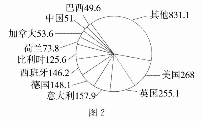 材料:法国位于经济发达的欧洲西部地区,拥有阳光海滩、历史遗迹群以及巴黎等时尚都市的旅游资源,辅以高素质的从业人员和高质量的旅游服务,是世界旅游大国。其首都巴黎一直是世界上深受游客欢迎的城市之一。图1为法国示意图,图2为某年巴黎地区游客来源地统计图(单位:万人)