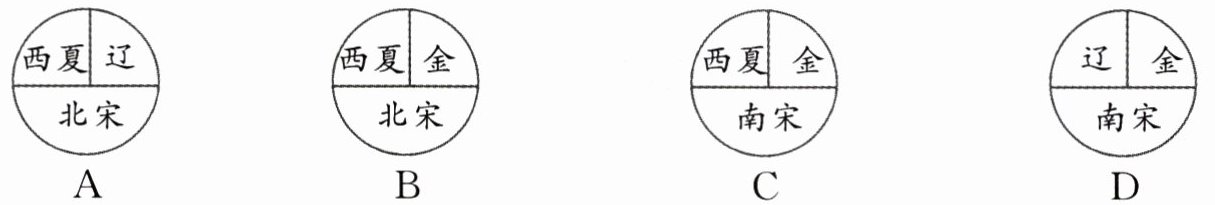 3. 下列四幅两宋与辽、西夏、金并立示意图中,哪一幅是错误的( )