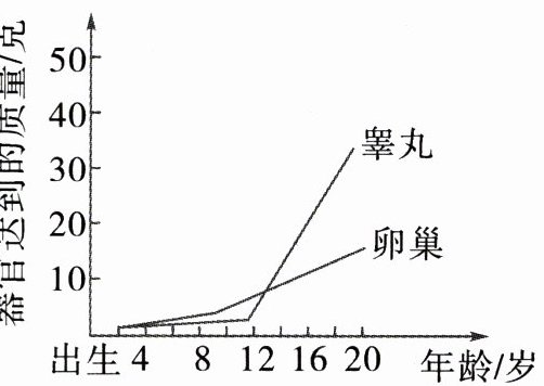 3. 右边是某地男、女主要生殖器官的发育趋势图,据图分析不能得出的结论是(