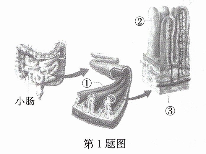 1. 如图,小肠是消化和吸收的主要场所,下列叙述中不能体现结构与功能相适应的是(