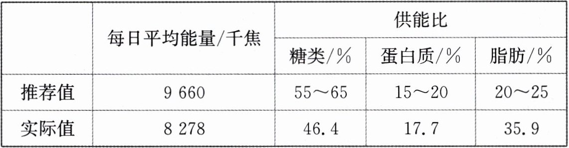 (3)记录并计算小华一天饮食能量供给情况,结果如下表。