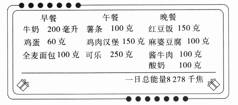 6. 小华即将参加校运动会的长跑项目,为了在比赛中发挥出良好状态,对备赛期间的营养供应进行记录与分析。