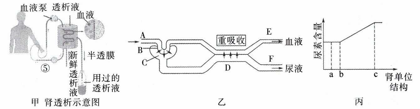 (4)图丙中横轴的bc段表示肾单位的某一结构,这一结构是图乙中的[