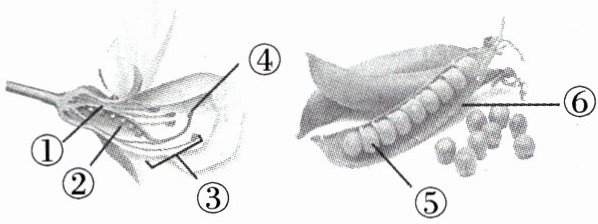 5. 下面是豌豆花和果实结构图,有关叙述正确的是(