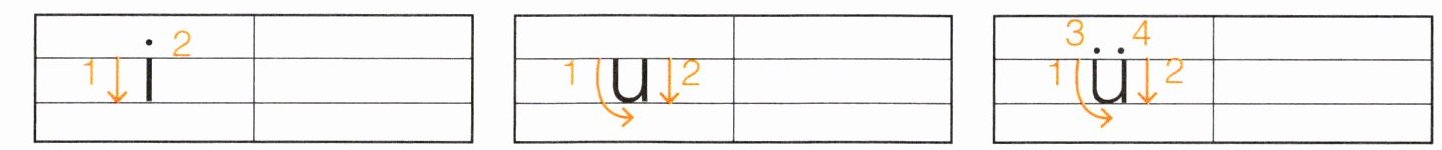 i u ü 解析 这道题考查单韵母的正确书写。根据笔顺提示写一写,注意字母在四线格中的位置。