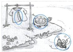i i i u u u ü ü ü 解析 这道题考查单韵母。本课学的单韵母是i、u、ü,在图中找一找,圈一圈。i像1字,u像乌龟壳,ü像小鱼吐泡,根据拼音字母的形状填一填,补全句子。
