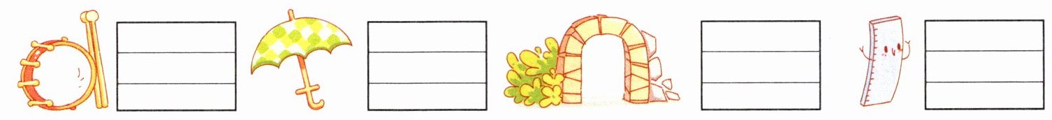 (1)③ 解析 这道题考查运用拼音阅读和理解文本的能力。儿歌内容是:“我的布娃娃,拿起大喇叭。嘀嘀嘀,嘟嘟嘟,弟弟乐得哈哈哈。”根据拼读可知,是“我”的布娃娃在吹大喇叭,所以选③。(2)dī dī dī dū dū dū 解析 这道题考查音节拼写与理解文本的能力。读完儿歌可知,大喇叭发出的声音是“dī dī dī,dū dū dū”。注意 i 加声调时,小黑点要去掉。