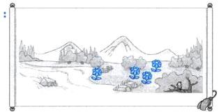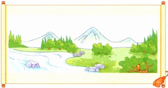 ①人 ②山 ③鸟 ④水