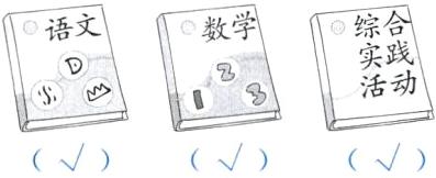(3)乐乐想准备星期二上学要带的书,请你选一选。(打“√”)