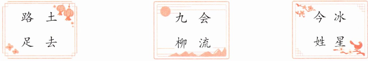 解析 这道题考查会认字和韵母。“去”的韵母是ü,“路、土、足”的韵母是u;“会”在语文园地三所学的读音的韵母是ui,“九、柳、流”的韵母是iu;“今”的韵母是in,“冰、姓、星”的韵母是ing。因此,应把“去、会、今”圈出来。