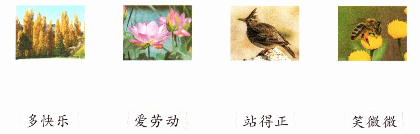 解析 这道题考查整合信息的能力。阅读儿歌可知,每个小节都描述了一种事物及其特点。第一小节描写了百灵很快乐,第二小节描写了蜜蜂爱劳动,第三小节描写了杨树站得正,第四小节描写了莲花笑微微。