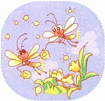 田野上,萤火虫提着小灯笼飞来飞去。那小灯笼