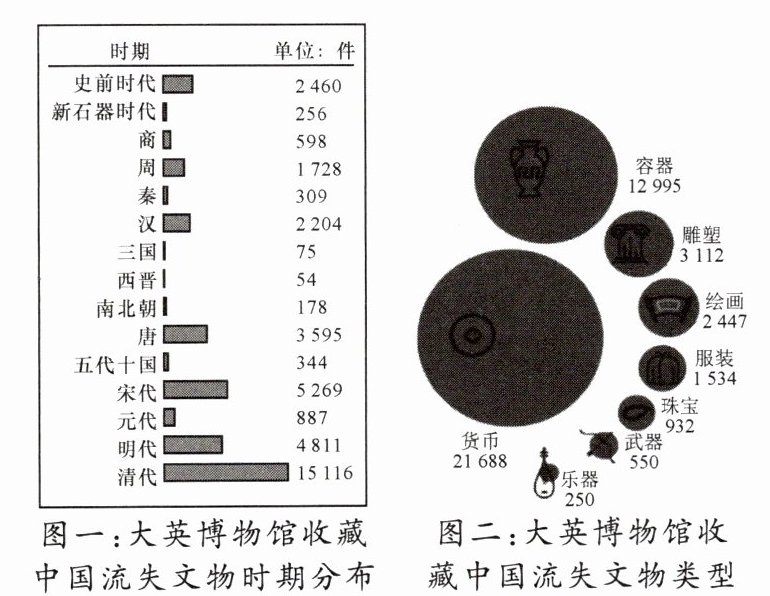 我认为中国文物流失海外是国家"落后就要挨打""民族弱则文物失"的体现。(1分)首先,流失的文物见证了列强对中国的掠夺,文物留在海外损害了民族自尊;其次,流失的文物是中国文化的损失,体现了国力的薄弱;最后,流失的文物回归中国,说明中国的综合实力逐渐增强,同时也彰显了中国的文化自信。(3分)通过各种方法积极追索流失的文物,既是对国家文化遗产的尊重和保护,也是对历史和文化传承负责。(1分)