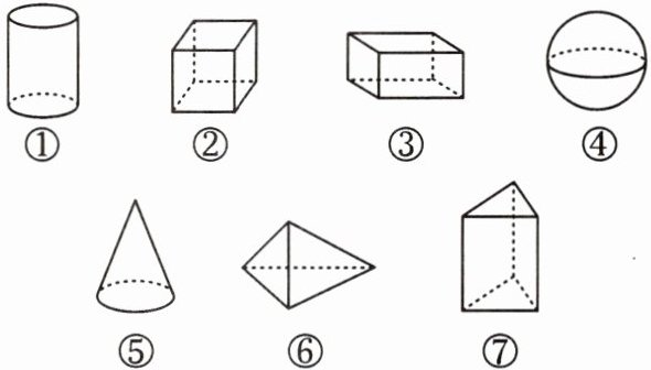 15. 在如图所示的立体图形中,棱柱有