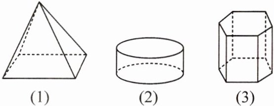 (3)包含的平面图形有长方形、六边形,其中长方形位于六棱柱的侧面,六边形位于六棱柱的上、下底面.