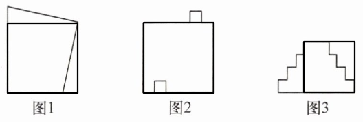 下列三幅图都是不规则图形,你能把它们各剪一次,分成两部分,然后拼成正方形吗?试试看.