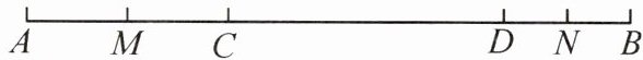 【例 2】如图,$ C $,$ D $ 为线段 $ AB $ 上的两点,$ M $,$ N $ 分别是线段 $ AC $,$ BD $ 的中点。