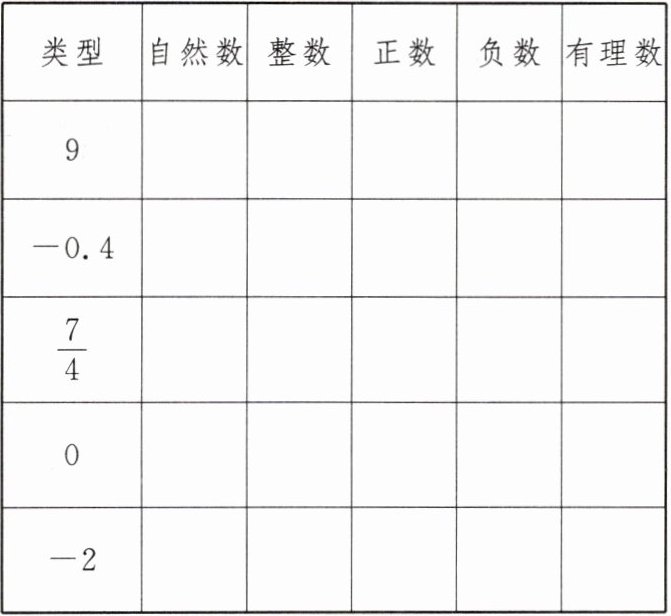 6. 判断表中各数分别是什么数,在相应的空格里打上“√”.