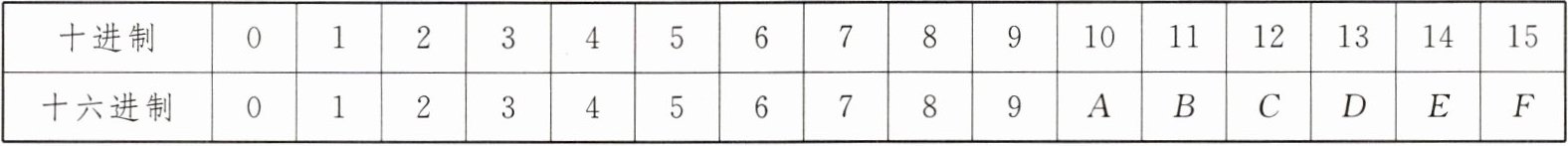(3) 无论是十进制、二进制、八进制还是十六进制,每种进制都有其独特的优势和应用场景. 在给网页添加颜色时用到的十六进制颜色码是通过以“#”开头的六位十六进制数值来表示颜色的方法,颜色的明暗可以通过十六进制数值的大小来表示. 已知将十六进制数转换成十进制数的算法与二进制数的算法类似,且十六进制数与十进制数之间的对应关系如下表: