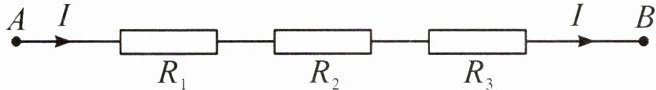 11. (2024·广州)如图,把 $R_{1}$, $R_{2}$, $R_{3}$ 三个电阻串联起来,线路 $AB$ 上的电流为 $I$,电压为 $U$,则 $U = IR_{1} + IR_{2} + IR_{3}$. 当 $R_{1} = 20.3$, $R_{2} = 31.9$, $R_{3} = 47.8$, $I = 2.2$ 时,$U$ 的值为