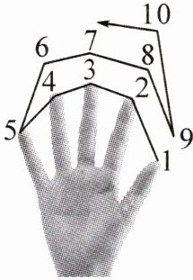 5. $A$湖南师大附中校本经典题 如图,我们做一个游戏:从大拇指开始,按照大拇指→食指→中指→无名指→小指→无名指→中指→食指→大拇指→食指$\cdots$的顺序依次数正整数 $1$,$2$,$3$,$4$,$5\cdots$.当第 $n$ 次数到中指时,恰好数到的数是