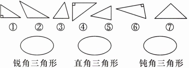 7. 观察下面的三角形,并把它们的标号填入相应的圈内。