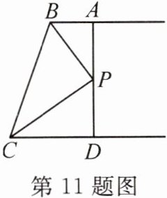 11. 如图,AB//CD,BP和CP分别平分∠ABC和∠DCB,AD过点P,且与AB垂直.若AD=8,则点P到BC的距离是(
