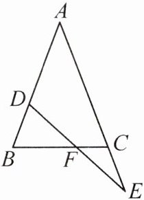 1. 如图,在 $\triangle ABC$ 中,$AB = AC$,点 $D$ 在 $AB$ 上,点 $E$ 在 $AC$ 的延长线上,且 $BD = CE$,$DE$ 交 $BC$ 于点 $F$. 求证:$DF = EF$.