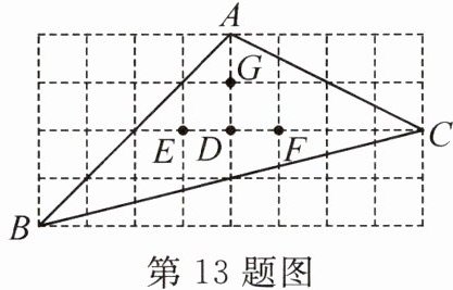 13. 如图所示的网格由边长相同的小正方形组成,点A,B,C,D,E,F,G均在小正方形的顶点上,则△ABC的重心是(
