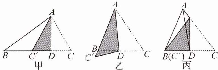 15. 下图是甲、乙、丙三位同学的折纸示意图(折叠后点C落到点$C'$处)。