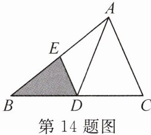 14. 如图,在△ABC中,D,E分别是边BC,AB的中点。若△ABC的面积等于8,则△BDE的面积等于