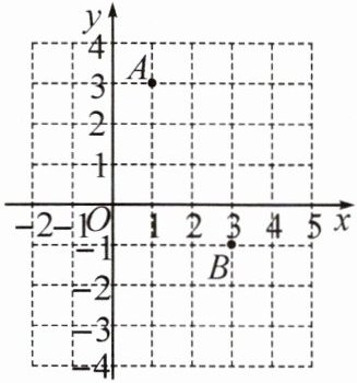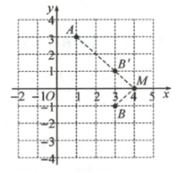 3. 如图,在平面直角坐标系中,已知点$A(1,3)$,$B(3,-1)$,$M$是$x$轴上一动点,当$AM - BM$的值最大时,在图中画出点$M$的位置,并写出点$M$的坐标: