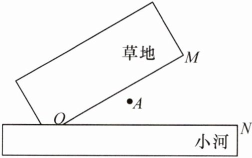 4. 如图,草地边缘$OM$与小河河岸$ON$在点$O$处形成$30^{\circ}$的夹角,牧马人从$A$地出发,先牵着马到草地吃草,然后再去河边饮水,最后回到$A$地. 已知$OA = 2\ km$,请在图中设计一条路线,使所走的路程最短,并求出整个过程所行走的路程.