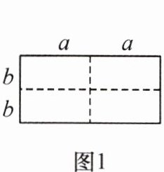 6.(2024·泸州期末)用两种不同的方法计算同一个图形的面积,可以得到一个恒等式.数学活动课上,老师展示了如图 1 所示的长方形纸片,它的长为 $ 2a $,宽为 $ 2b $,用剪刀沿图中虚线均分成四个小长方形,然后按图 2 的方式拼成一个正方形.请解答下列问题: