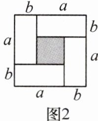(2)观察图 2,请写出 $ (a + b)^{2} $,$ (a - b)^{2} $,$ ab $ 之间的等量关系:.