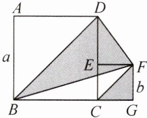 解:当$a = b$时,图1中的两个等腰直角三角形全等,图2中的长方形$ABCD$变为正方形。