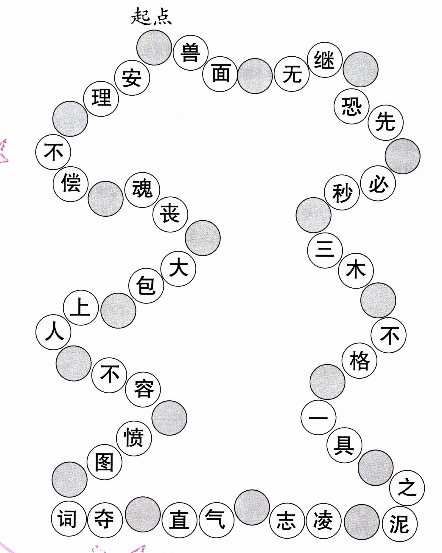 第一关:试着逆时针填成语,不会的可以查词典。