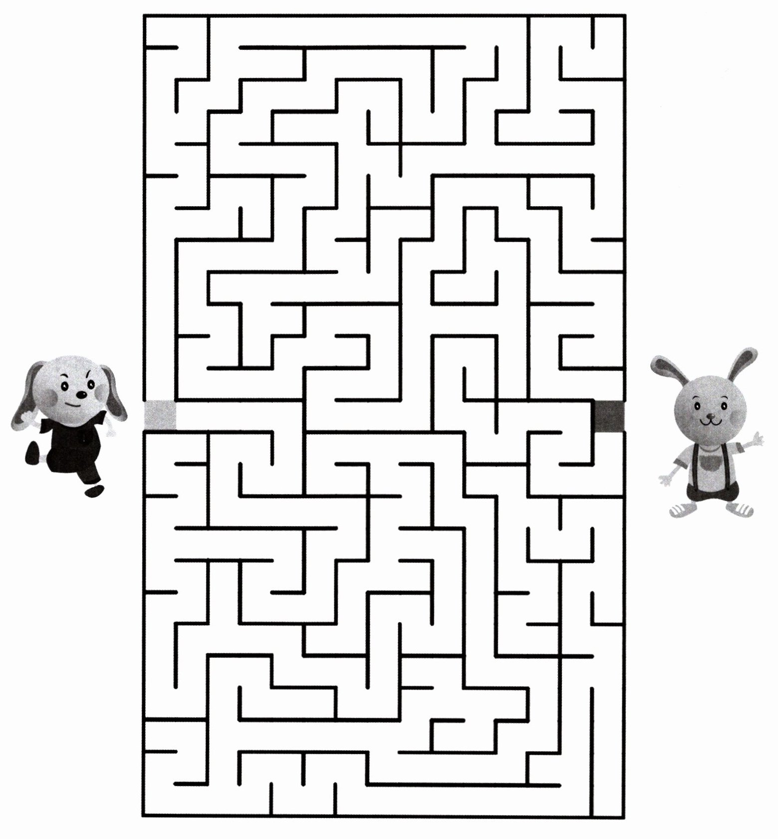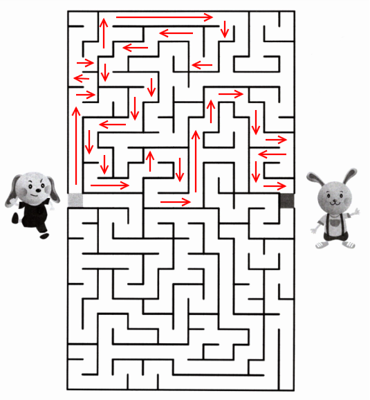 快乐的暑假开始了,小狗决定去找好朋友小兔玩耍,但是镇上到处都在施工,许多路段封闭了。怎样才能顺利到达小兔家呢?请帮小狗找到通畅的路线,让小狗和小兔能够一起愉快地玩耍!