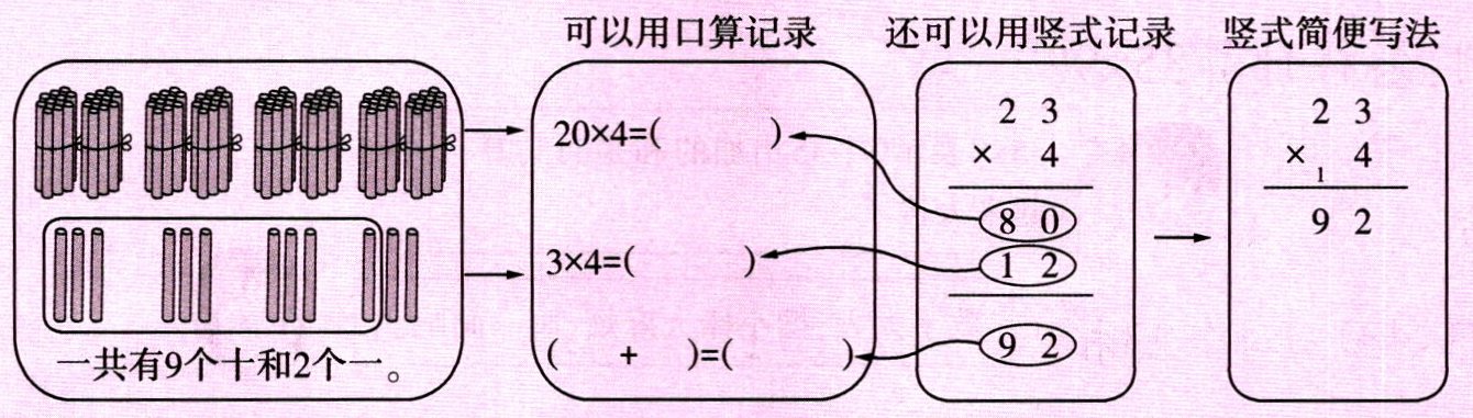 $23×4$表示4个23相加的和,$23 + 23 + 23 + 23 = 92$。