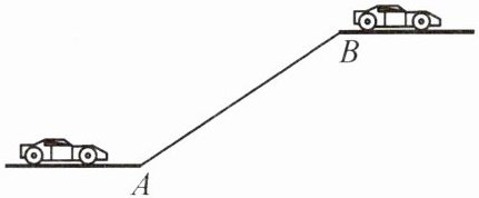2. 如图是驾驶一辆轿车从水平地面上沿斜坡行驶至高架桥的情景,在此过程中汽车以 10 m/s 的恒定速度运动,发动机的功率恒定为 90 kW 不变,经过 10 s 汽车从坡底 A 点到达坡顶 B 点。求: