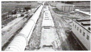 1. (2024·亳州谯城区期中)如图所示,这是我国首条超高速低真空管道磁浮交通系统全尺寸试验线,也是全球在建距离最长、规模最大的全尺寸超高速低真空管道磁浮交通系统试验线。2024 年 1 月,高速飞车全尺寸超导电动悬浮试验成功,在 0.9 km 长的平直线路上实现了 150 km/h 的稳定悬浮运行,行驶中受到水平方向的阻力为 $1.8×10^{5}N$。求高速飞车在 0.9 km 长的平直线路上稳定运行时: