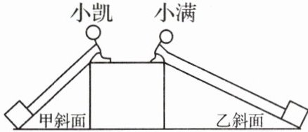 7. (2023·池州贵池区期末)小凯和小满同学用相同的拉力$F$拉着同一个物体,沿不同的斜面向上匀速运动了相同的距离,如图所示。此过程中,下列说法正确的是 (