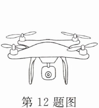 12. 如图所示是一款新型智能航拍无人机,机身总质量2kg,小李操作该无人机先以1.2m/s的速度沿竖直方向匀速上升48m,接着又以2m/s的速度沿水平方向匀速飞行80m,无人机在上升过程中需要克服重力做功