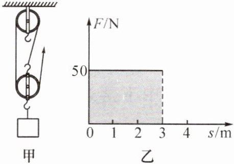 11. 如图甲所示,用滑轮组将重为90N的物体匀速提起,图乙是拉力$F$与绳子自由端移动距离$s$的关系图像,不计绳重和摩擦。则图乙中阴影部分的面积表示的物理量是