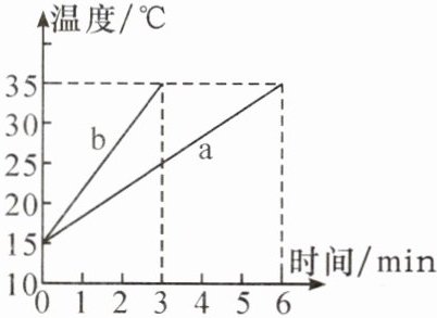 6. (2023·宜昌)在两个相同的烧杯中分别装有质量和初温相同的水和某种液体($c_{液}<c_{水}$),用两个完全相同的电加热器分别对两杯液体加热,每隔一段时间用温度计分别测量它们的温度,并画出了温度随时间变化的图像(如图),由图像可知(