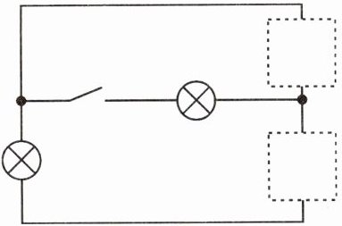 16. 如图所示,请在两个虚线框内填“电源”或“开关”的符号,使开关都闭合时,两灯组成并联电路。