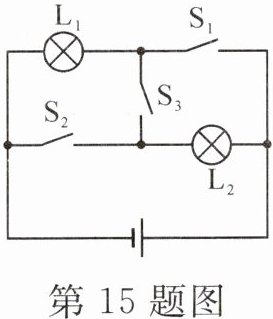 15. 如图所示电路中,要使小灯泡L₁、L₂串联,必须闭合开关